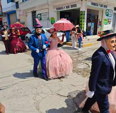 Los recorridos por las calles principales adornadas con tiras de tela de colores, acompañan el carro alegórico de la reina y princesa, algunas familias ofrecen bebidas refrescantes a los cansados danzantes que por el calor típico de la localidad aceptan agradecidos. Llegada la noche se reúnen en el lugar de costumbre, la Plazuela Hidalgo, que año con año se ve mas pequeña para dar cobijo a la cantidad de disfrazados que se dan cita para bailar orgullosos las melodías que la orquesta entona.